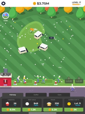 Start from scratch and craft the best golfing tycoon experience along the way! Upgrade your fairway, golfers, and cars to the top to build the ultimate golfing paradise!