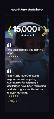 “absolutely love Goodwall’s supportive and inspiring community. Participating in challenges have been rewarding and winning has motivated me to push my limits.” - Billy K.