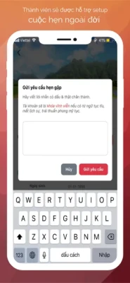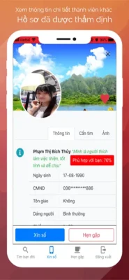 Đơn giản chỉ việc tải ứng dụng và thực hiện tìm kiếm, làm quen với những người bạn khác giới khi gửi "thích", "ghép đôi" và "chat" để tìm hiểu hẹn hò. Với hơn 10,000 thành viên và hàng nghìn người dùng thường xuyên mỗi ngày, đây sẽ là cơ hội tuyệt vời để bạn có thể kết bạn mới, làm quen, chat và hẹn hò với những người Việt độc thân khắp mọi nơi.