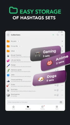 The special assistant Wizard will help gather a versatile set to achieve maximum audience coverage and a large number of instalikes. The collected sets of hashtags for instagram are conveniently stored in Collections for quick reuse. Get insta followers has never been so easy!