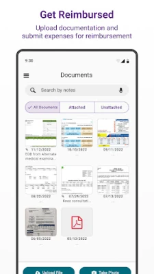 - Documentation: Take a photo with your device, upload images from your gallery, or add images and PDFs from your device to initiate claims and payments.
