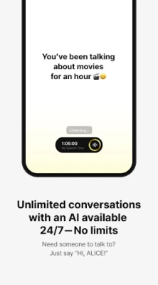 Chat in English with ALICE, your AI friend that remembers you. Talk about your life and receive precise feedback.