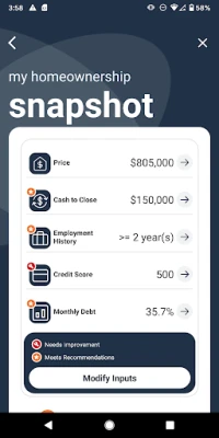 • Affordability analysis: Check your total buying power based on where your finances are today, then see the real-time impact that interest rate changes or other factors can have on your estimated monthly payment.