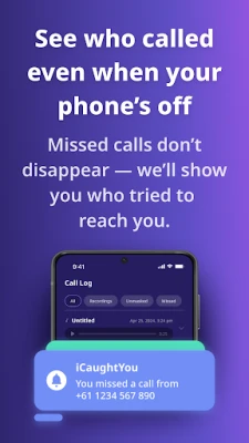Key features: • Find out who is hiding behind No Caller ID • See names, not just numbers • Record & transcribe calls for evidence - incoming and outgoing • Block spam & unwanted calls • Catch missed calls — even when your phone’s off • Truth Analysis (AI-powered) — detect risk signals & honesty in conversations • Protect your privacy and safety.