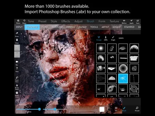 You can also import your own Photoshop brushes and curves and fonts.