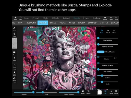 Images can also be repainted with different brushes.