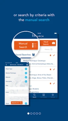 Searches can be carried out by taking or uploading a photo, or by entering search criteria manually.
