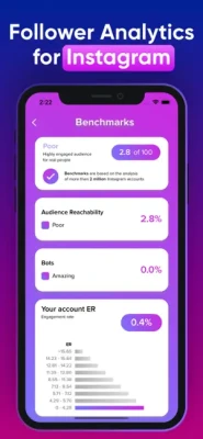 Quick, easy and reliable. Get all your analytics in one App and keep track of your profile anywhere anytime! Analyze, optimize and get on top of the Instagram Game!