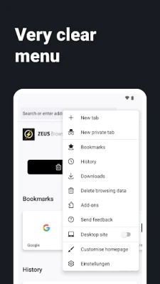 Features: - Incognito mode: surfing without saving the browsing history - Web bookmarks: Save web pages - Browsing history: Internet history - Search engine: search the Internet - Control videos easily with remote control - ZEUS TV Remote: control ZEUS Browser with our smartphone