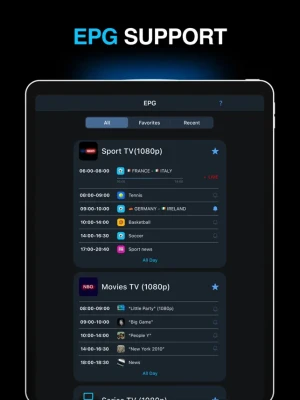 - Support for live broadcasts, movies and TV shows