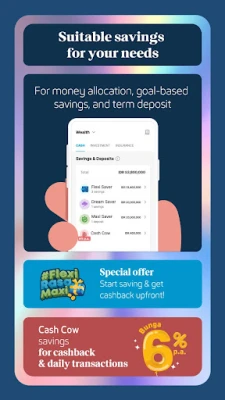 - Cash Cow: Special savings for cashbacks and your daily transactions