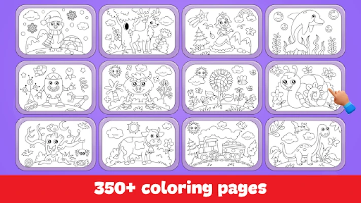Kids coloring game is a free coloring book for kids with verity of coloring pages for different coloring categories. Coloring game for kids is fun learning app which helps children learn alphabets, animals, fruits, flowers, vegetables, shapes, vehicles, insects, numbers and more. Coloring Game for kids is loaded with 350+ coloring pages that can keep your kid busy for hours and make them learn new things while the paint and draw and also improves their painting and drawing skills. Happy paint and learn kids. Basis concept of Kids coloring book is to provide a drawing and painting game for kids that contain different categories or drawing page that helps kids learning and have fun at the same time.
