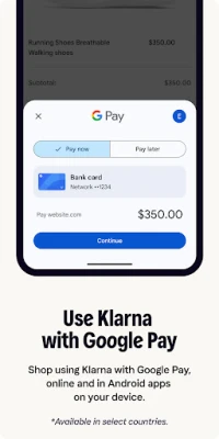 Split the cost with Klarna on Google Pay, available online and in-app⁴