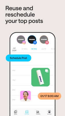 REUSE YOUR BEST POSTS on your other social networks for easy content. Just make a few tweaks & re-schedule them right in the app.