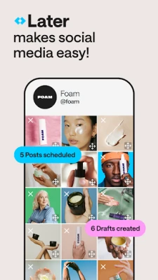 • SCHEDULING FOR ALL SOCIAL NETWORKS: Save time and use the Later Social mobile app to schedule to Instagram, Facebook, TikTok, LinkedIn, Twitter/X, and Pinterest.