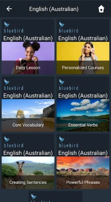 Bluebird brings language learning to the world’s population in an unprecedented way. You can learn Australian English from any of 146 narration languages.