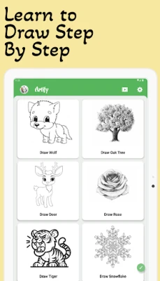 Step-by-Step Tutorials: Follow easy-to-understand tutorials that guide you through drawing various subjects like animals, flowers, trees, and more.