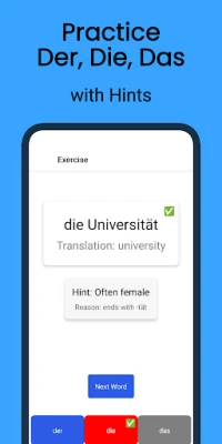 For beginners and advanced German learners. Learn vocabulary through Anki flashcards featuring over 15000 words, including A1, A2, and B1 Goethe word lists. Learn A1, A2, B1, B2, C1, C2 German words. Practice der, die, das with hints. Engage in various advanced grammar exercises covering cases, verb conjugations, prepositions, and more. Review German grammar through summary tables.