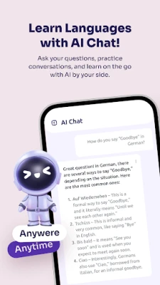 Test your knowledge in an engaging way! Our mascot guides you through interactive quizzes, making your language learning experience more enjoyable.