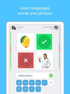 Playing online is also one of the best ways to test your knowledge of foreign vocabulary. Play in duo mode with your friends or other players. The app features useful functions that enable you to do exercises and take tests, or only study what you have gotten wrong. You can also skip Beginners course and move to more advanced lessons.