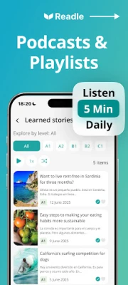 Readle is a Spanish language learning app with real-world news & stories. It is the world's first CEFR-graded reader to help you learn Spanish. Easily read & listen to news & stories anytime, anywhere – Take 10 minutes daily to learn Spanish and create a reading habit.