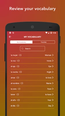 Learn 3500 Spanish nouns, adjectives, articles and verbs to enrich your vocabulary. Memorize most common Spanish words. Listen pronunciation of the words. Learn with word games, phrases and word lists. Use flash cards to master frequently used, core vocabulary.