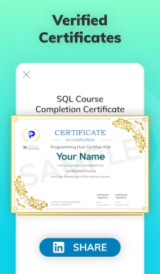 “Learn SQL” app has a really simple and intuitive user interface. It is the best app to let you learn the SQL programming language for free. So, what are you waiting for? Download the app now to become a SQL Programming Pro.