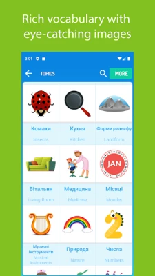 ★ Vocabulary Building: Explore over 60 topics filled with eye-catching pictures and native pronunciation to expand your Ukrainian vocabulary effortlessly.