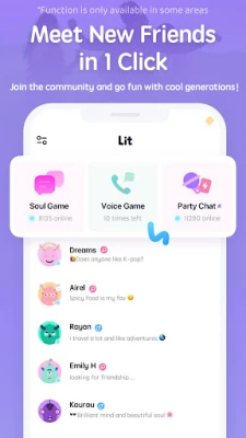 Lit is a safe and warm community to share your honest thoughts and feelings. You can always encounter cool and caring people in Lit. People here can experience emotional communication comfortably through different online interactive features. Most of our users have become friends by taking the first moves inspired by Lit's impressive features.