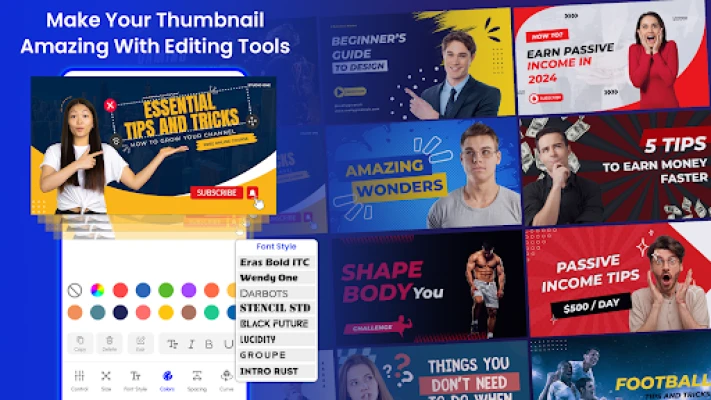 Create professional-quality thumbnails with ease by using the thumbnail maker app. Edit and customize them using the built-in thumbnail editor.