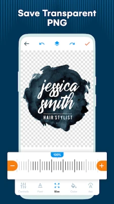 Add text, shape, stickers, and background of your choice with this logo creator app.