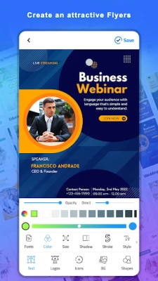 Now there are two new sections in logo creator, which are designing flyers for free and designing personal cards, as designing an advertising flyer has become very easy through logo maker apk .