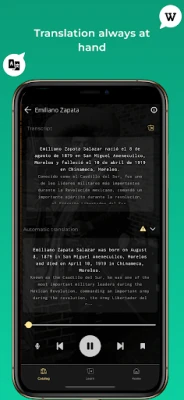 Lwingo is the best app to practice Spanish while listening to Wikipedia podcasts about your favorite topics: