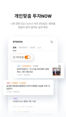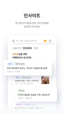 -내가 원하는 국내/해외주식과 상품, 투자정보를 하나의 키워드로 통합 검색하고, 내가 관심있는 뉴스나 리서치, 금융정보를 일일이 찾지 않아도 통합 피드에서 모아볼 수 있습니다.