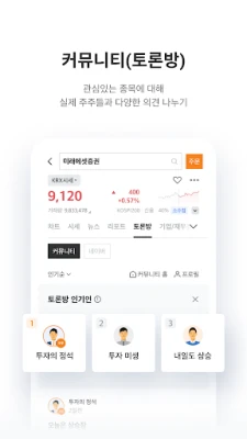 -나와 같은 종목을 투자하는 투자자는 어떤 생각을 하고 있는지 궁금한적 있으셨나요? 실제 주주들이 내 주식에 대한 투자 아이디어와 정보를 나눌 수 있는 종목 토론 커뮤니티를 제공합니다.