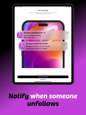 4. Push Notifications: Stay in the loop with customizable push notifications. Receive instant updates whenever there's a change in your follower count, including new followers and unfollowers.