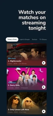 - Filter your matches by mood, streaming, etc
