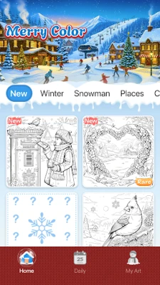 Merry Color is more than a coloring book—it’s your cozy companion for winter days. Enjoy peaceful sessions alone or share your creations with family and friends. Explore daily new puzzles, seasonal events, and uplifting winter stories that spark joy and imagination. With clear guides, relaxing features, and a supportive community, coloring is always simple, satisfying, and free from pressure.🍃