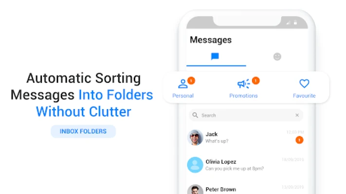SMS Organizer for organizing your text messages. The private messaging app separates personal text messages and other promotional messages so that they can be easily managed.