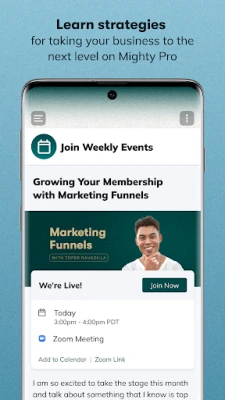 In this app, members can access mastermind groups, masterclasses on community engagement, and exclusive materials designed to help you learn as rapidly as possible and adjust quickly based on new data and insights.
