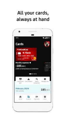 In the Cards section you have control of all your UniCredit cards (Credit, Debit, Rechargeable) and can easily manage all available features.
