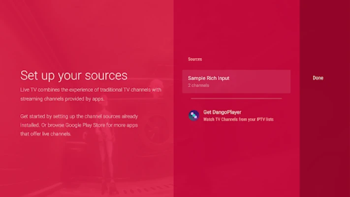 Mochi Live TV is a live TV app based on the Google Live Channels that uses the Android TV Input Framework, allowing you to watch TV channels from apps that supports the TV Input Framework and the TV tuner on your Android TV