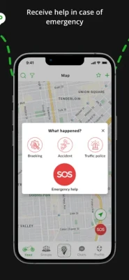 S.O.S.: Just push the SOS button to receive help from nearby riders or inform them about the police post.