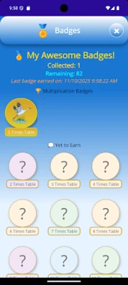 Awesome Rewards: Earn cool Badges and Coins for mastering tables and achieving perfect scores! Kids love collecting them!