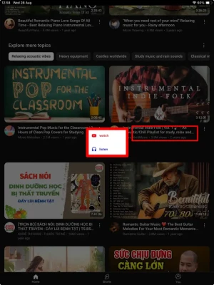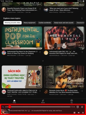 Some features: - Simple and easy to use: tap on headphones icon to play music, tap on video thumbnail to watch video - Control player through notification bar and lock screen - Auto play next song - Option to repeat a song - Speed options - Timer to off - Consume less data than video (it's really audio only) - It's totally free and no ads interfering your listening