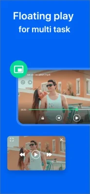Floating Player (PIP) Play the video in a pop-up window. Video popup enables multitasking. The floating video player overrides other apps and it can be moved and resized easily