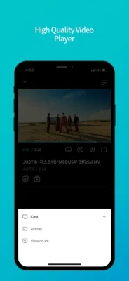 1) MUSIC: You can play music in high quality, with background play function. Also, you can read lyrics and pronunciations in 12 different languages and see who sings the lyrics.