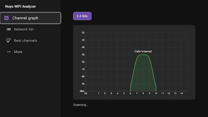 - 📈 Channel graph (2.4/5/6 GHz): Visualise Wi-Fi signal strength, channel overlap, and noise in an easy-to-read chart.
