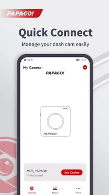 PAPAGO Focus is designed for PAPAGO dash cam. Unlike traditional dash cams that always need PCs to browse videos on large screens, PAPAGO Focus supports real-time preview by connecting the dash cam with your mobile phone through WiFi. You can browse and play videos easily on the phone. Modifying dash cam settings on the phone is also supported. PAPAGO Focus gives you a brand new user experience on dash cams.