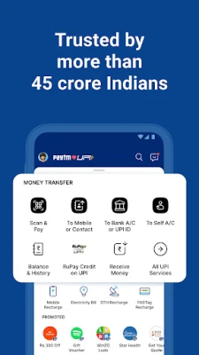 Paytm (पेटीएम), India’s #1 Payment App, is trusted by more than 45+ Crore Indians. Paytm is a one-stop solution for all your payment needs and is also a reliable money transfer app: